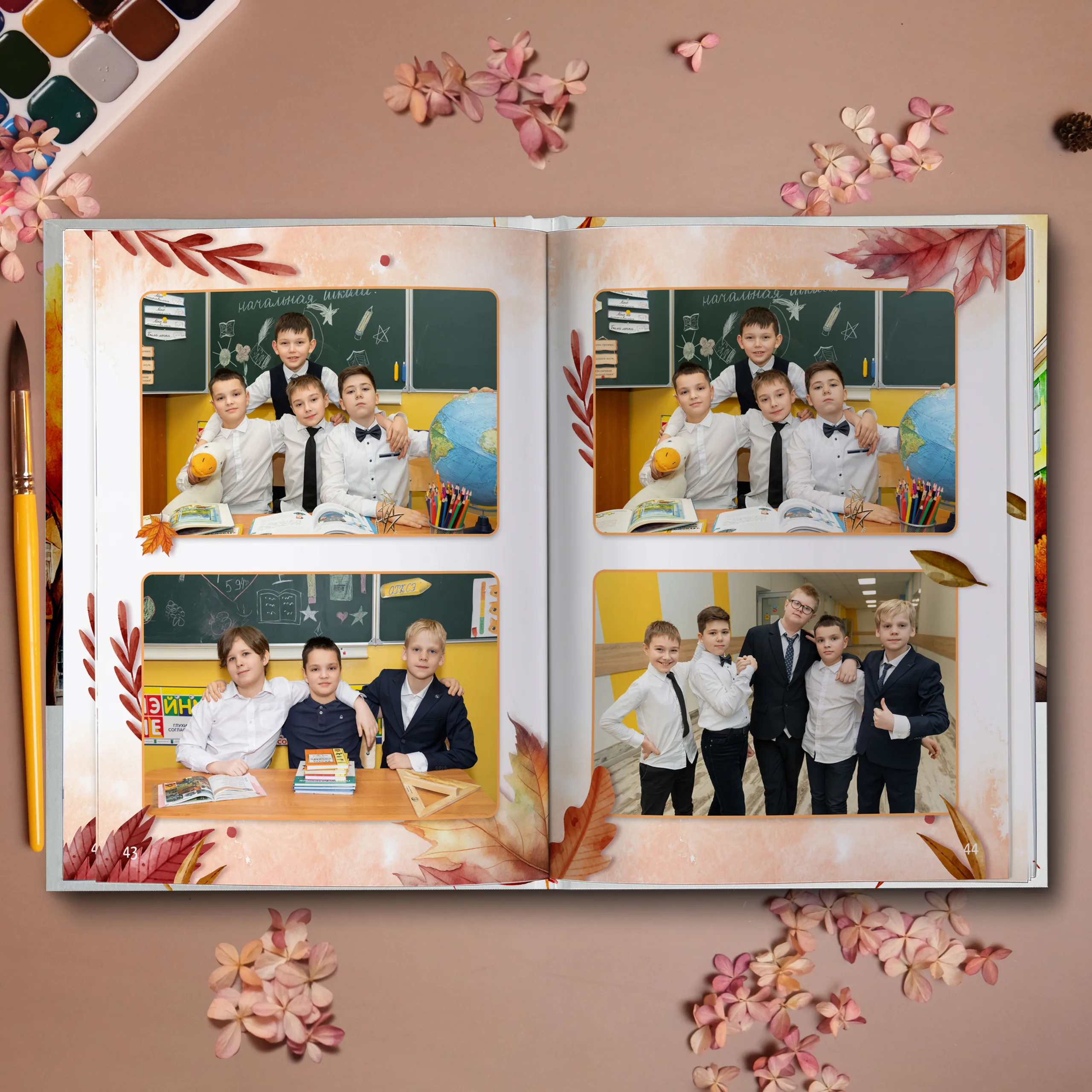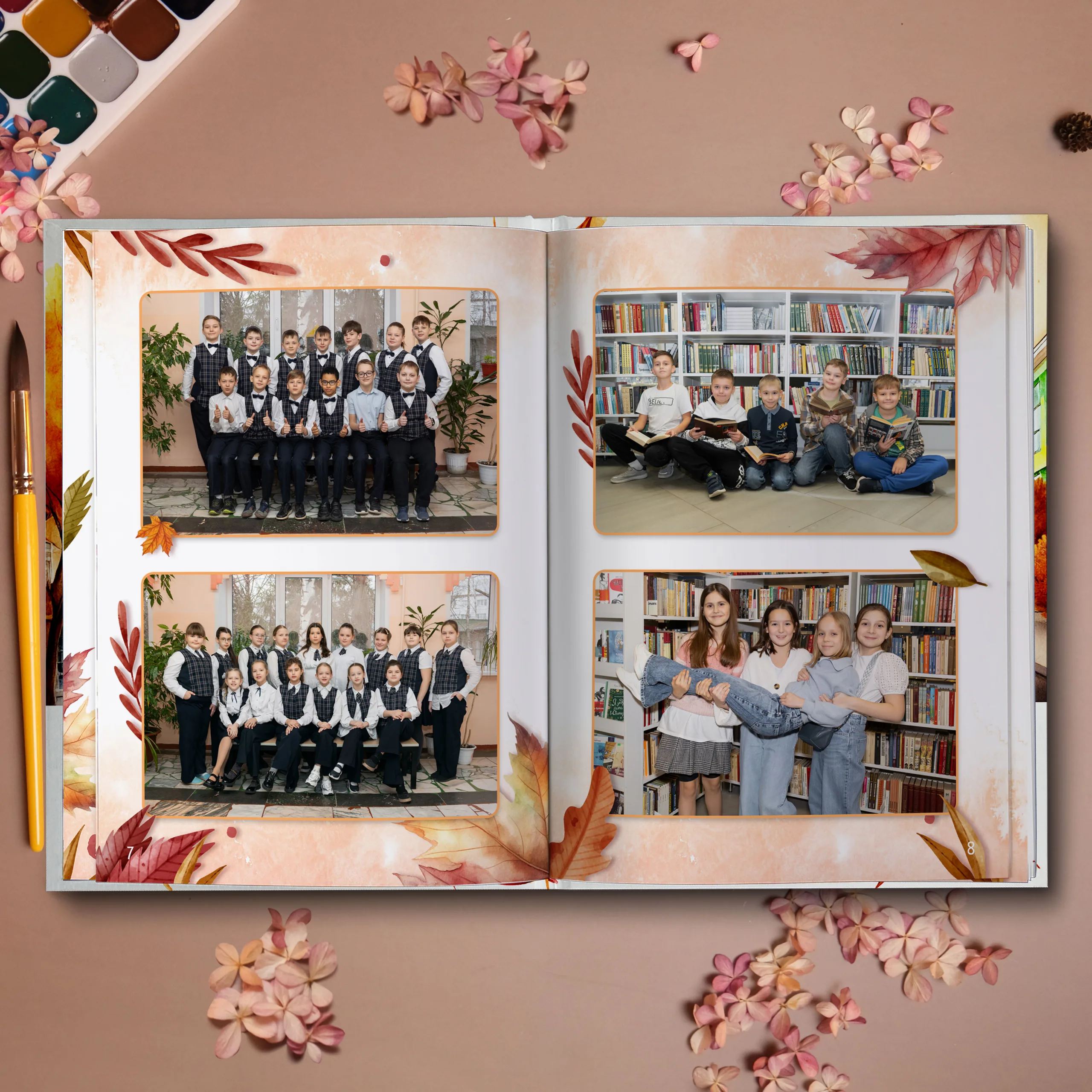 Последние 3 разворота — общие репортажные фотографии класса (12 фото)
