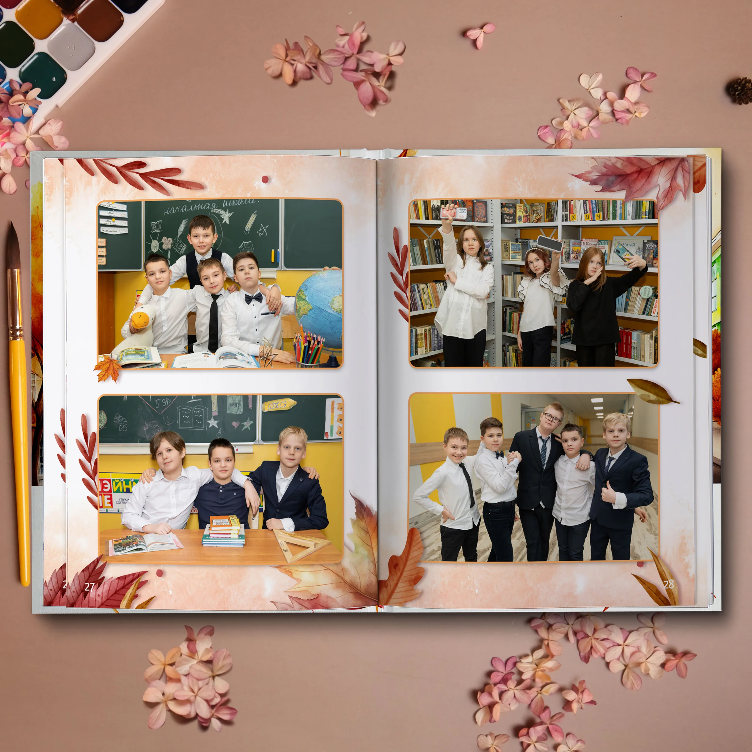 Предпоследние 3 разворота — общие репортажные фотографии класса (12 фото)