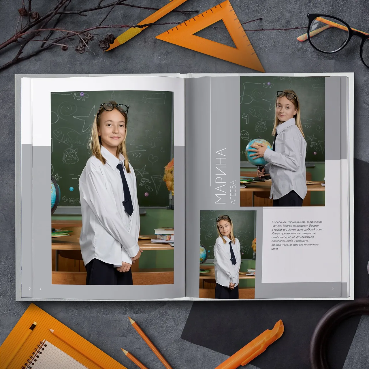 • Две личные страницы ученика с репортажными фото